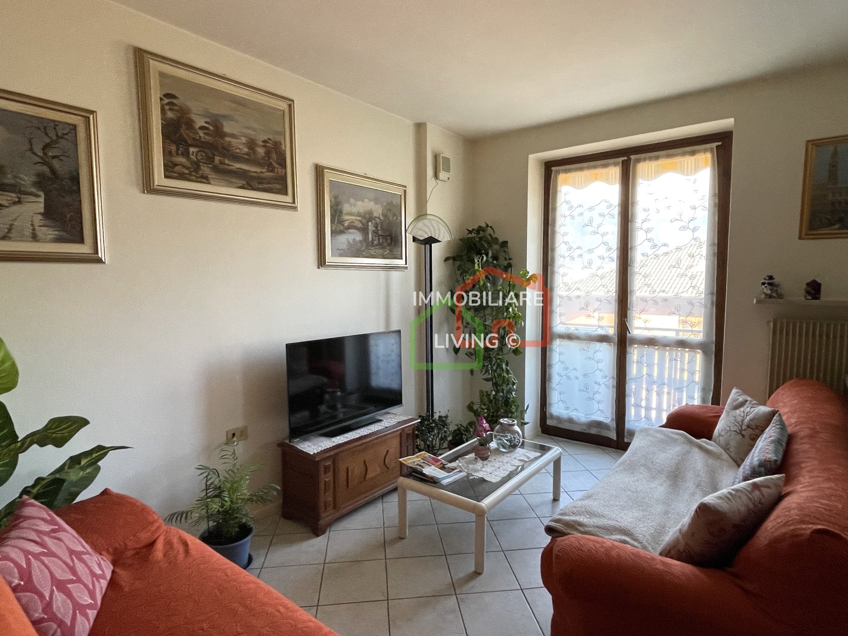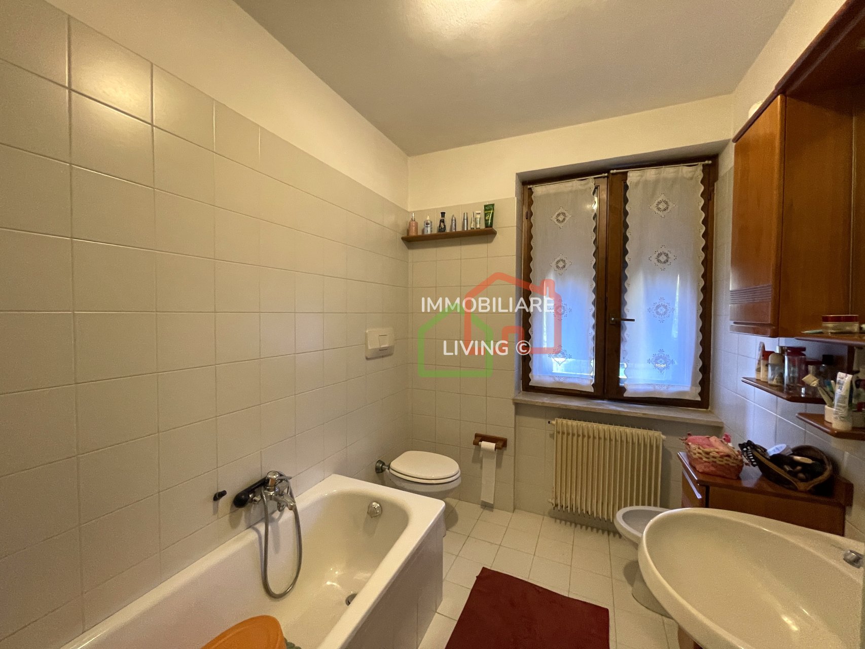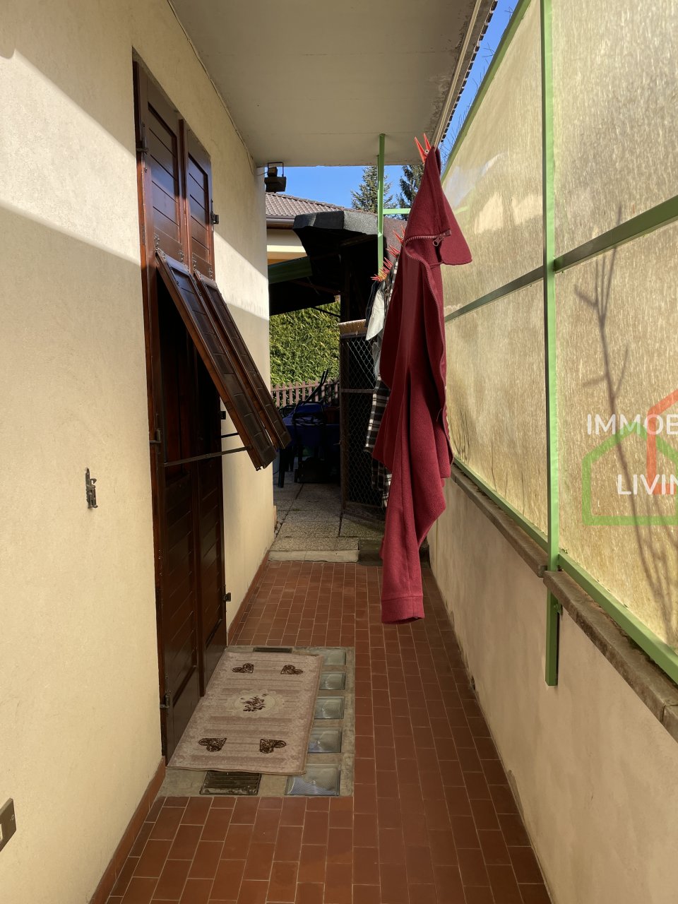 APPARTAMENTO con giardino, posto al piano rialzato di una abitazione privata (no condominio) composto da ampio soggiorno con angolo cottura, due stanze, bagno finestrato, ripostiglio e due balconi. Libero su tre lati con esposizione a ovest-nord-est. La proprietà si completa di giardino privato, cantina e garage. Subito disponibile. APE ND.