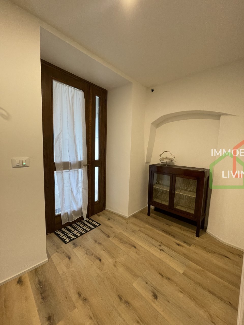 ESCLUSIVO APPARTAMENTO completamente ristrutturato a nuovo con dettagli di forte personalità, situato al primo piano di una caratteristica casa rustica in centro paese. Dall'ingresso indipendente fronte strada si accede, attraverso un corridoio che serve i diversi locali, al luminoso soggiorno con soffitto decorato a stucchi ed originale stufa ad olle, alla grande cucina abitabile, alle due stanze e ai due ampi bagni, uno dei quali con vasca idromassaggio. Sono presenti inoltre due ripostigli, uno dei quali - di dimensioni generose - può essere utilizzato come locale hobby- studio-laboratorio. Sullo stesso piano l'abitazione dispone di altre due stanze con bagno, collegate all'appartamento principale da un disimpegno ma che hanno anche un accesso indipendente dal portico esterno, e possono costituire una piccola dependance. Al piano terra: altri ripostigli, avvolti e centrale termica con caldaia autonoma a gasolio. APEND.