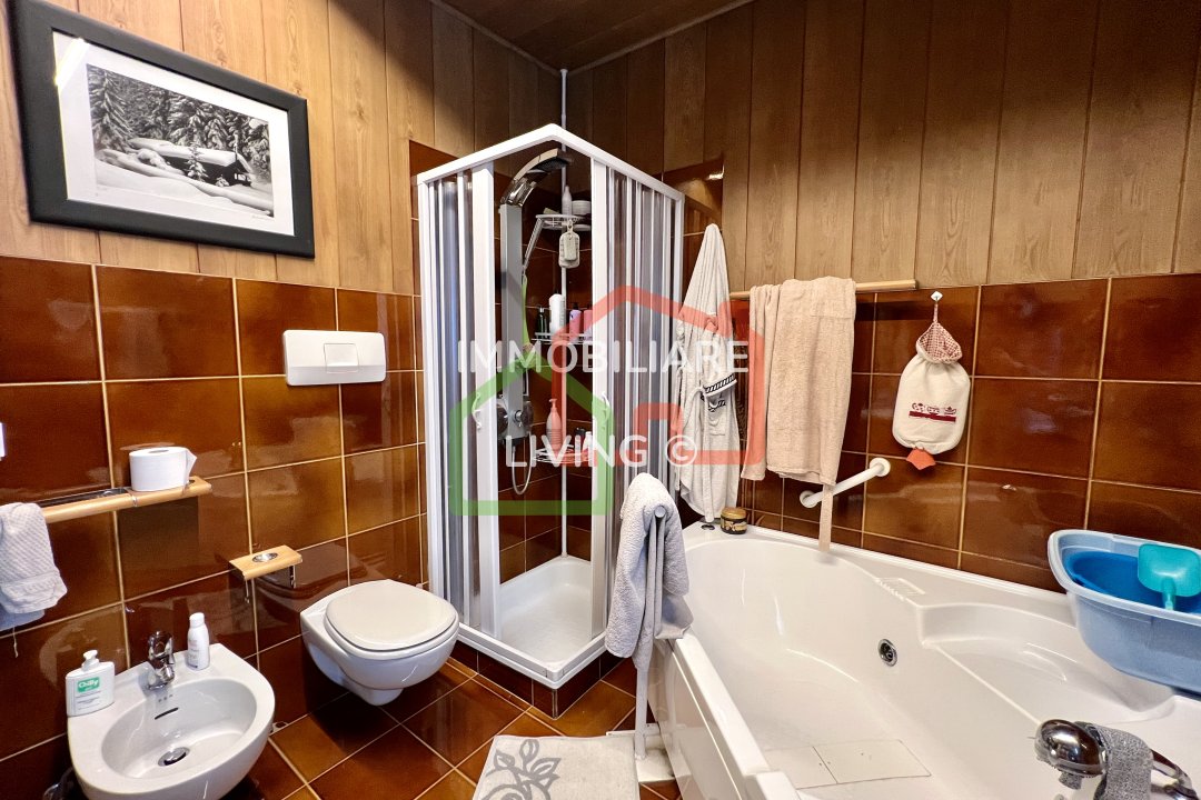 Appartamento al piano terra composto da grande soggiorno con accesso su ampio terrazzo attrezzato, disbrigo, cucina, tre stanze, doppi servizi, ripostiglio e due comodi balconi. Completano la proprietà cantina e ripostiglio al piano seminterrato.