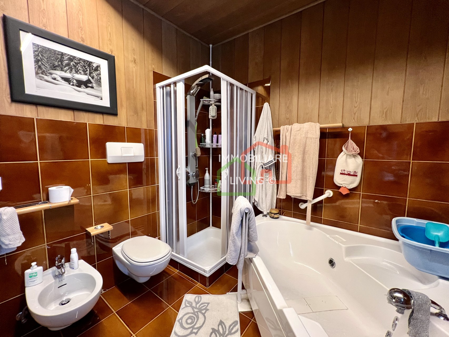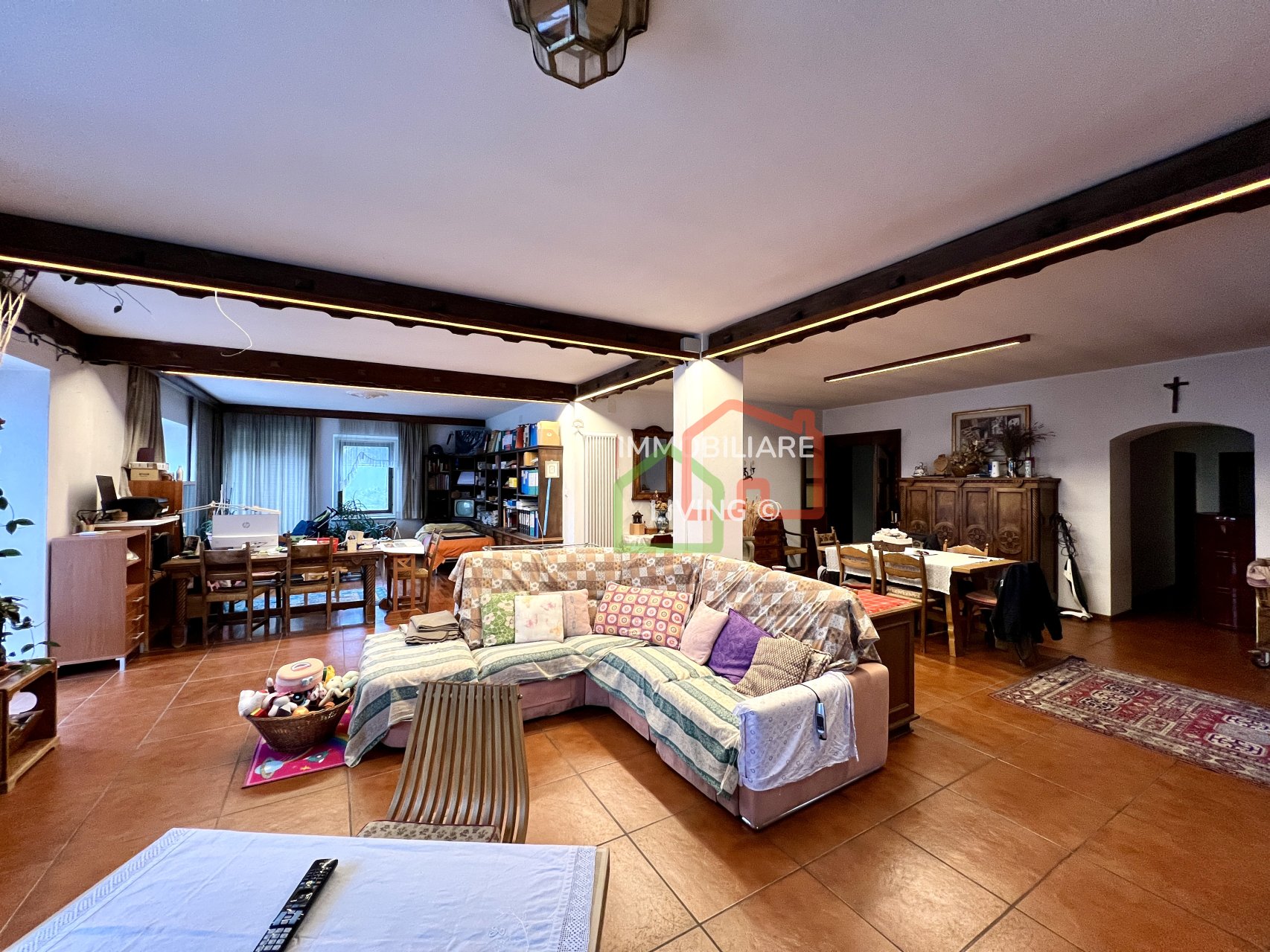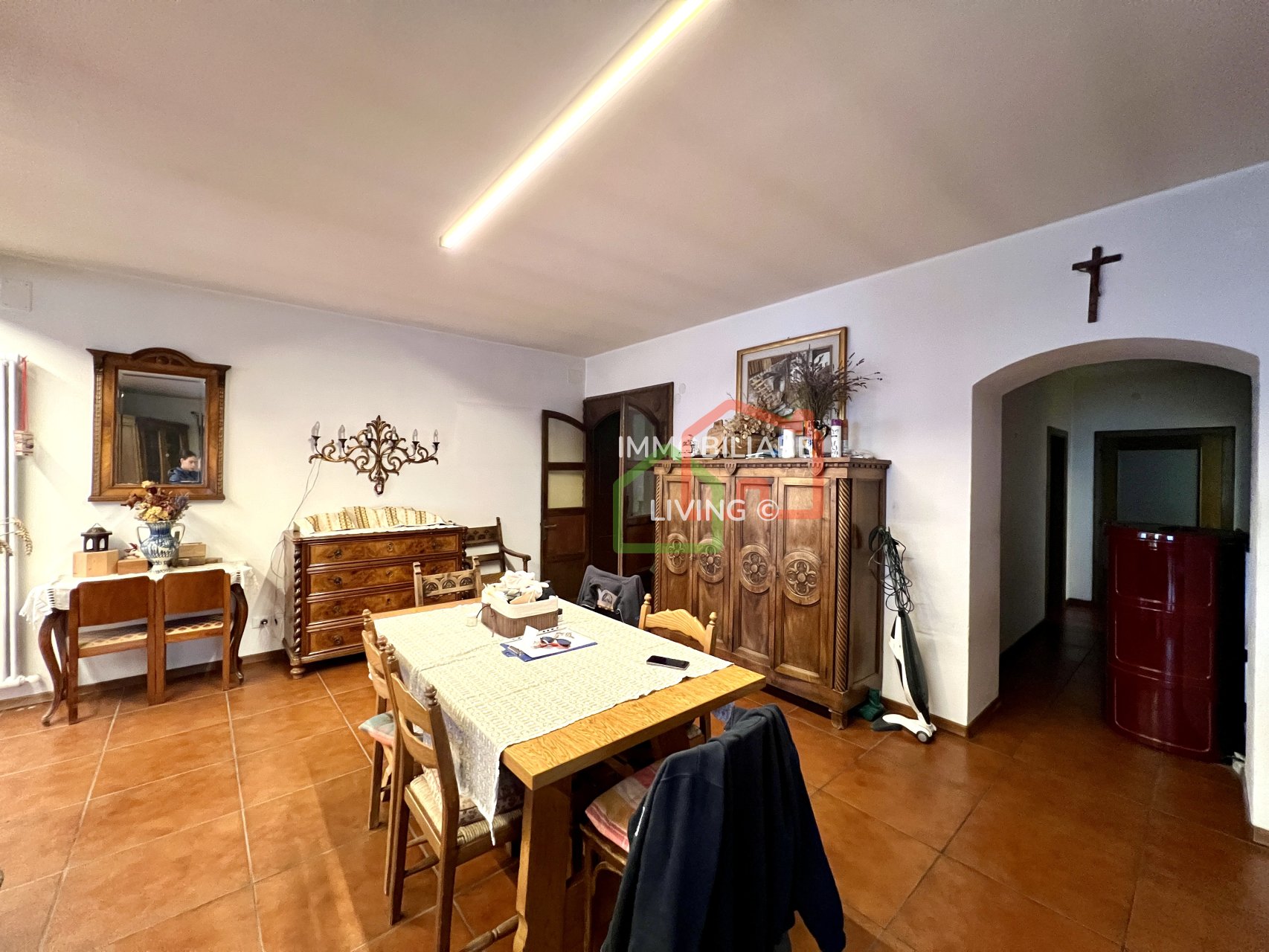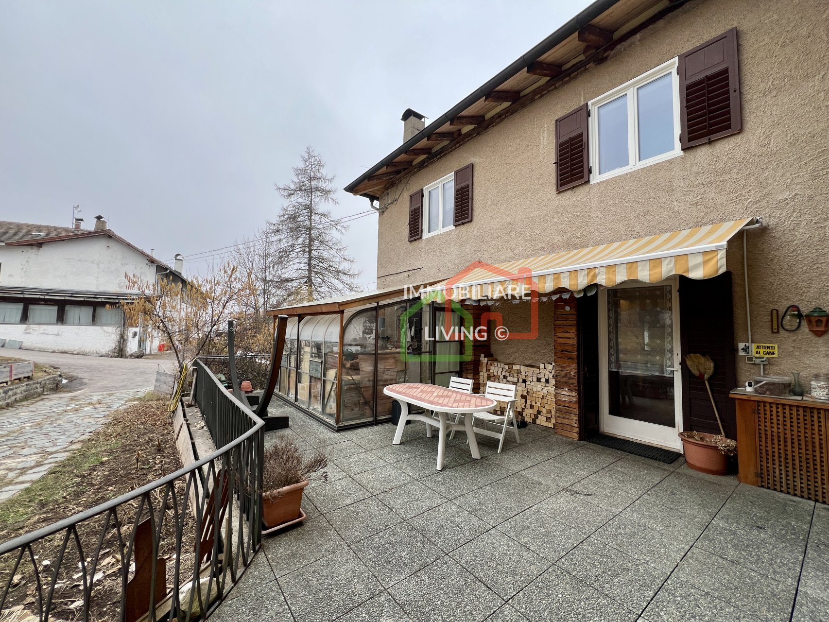 Riscaldamento autonomo con piccola caldaia a pellet e meravigliosa stufa a olle in soggiorno. APE E