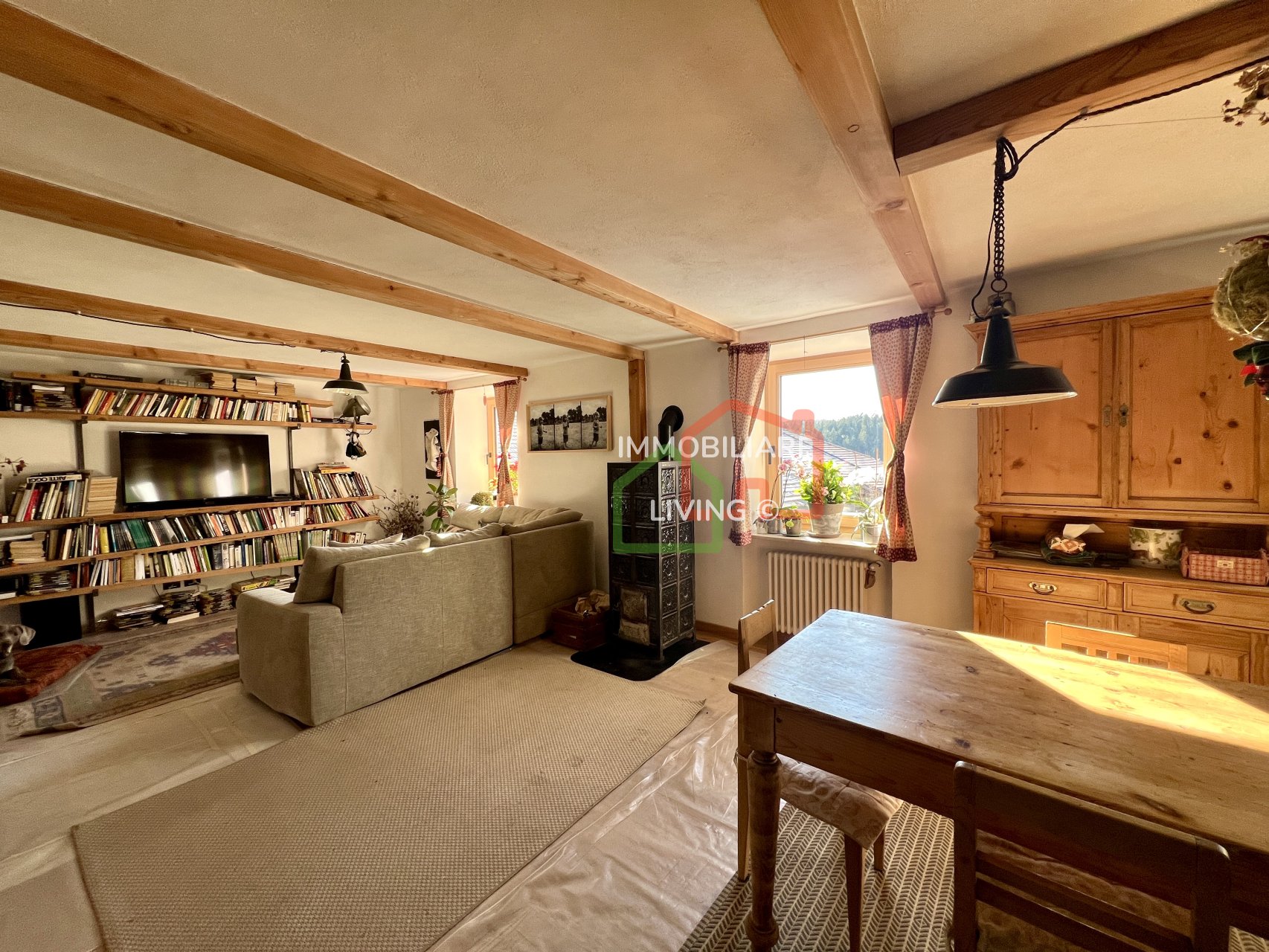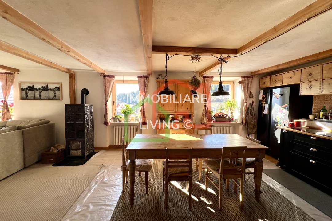 Al Maso Seppi proponiamo un accogliente APPARTAMENTO RISTRUTTURATO al secondo piano di una casa rurale con ingresso indipendente, composto da grande soggiorno con zona pranzo e cucina a vista, due stanze, doppi servizi, ampia soffitta, centrale termica, cantine, andito, garage e orto. L'appartamento viene proposto parzialmente arredato, con rifacimento dell'impianto elettrico ed idraulico effettuato nel 2023 e del tetto circa una decina di anni fa. Riscaldamento autonomo con caldaia a pellet. APE C+.