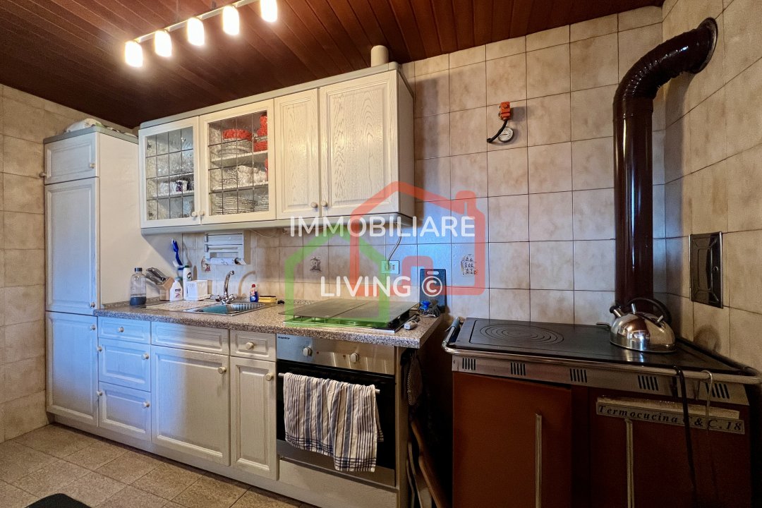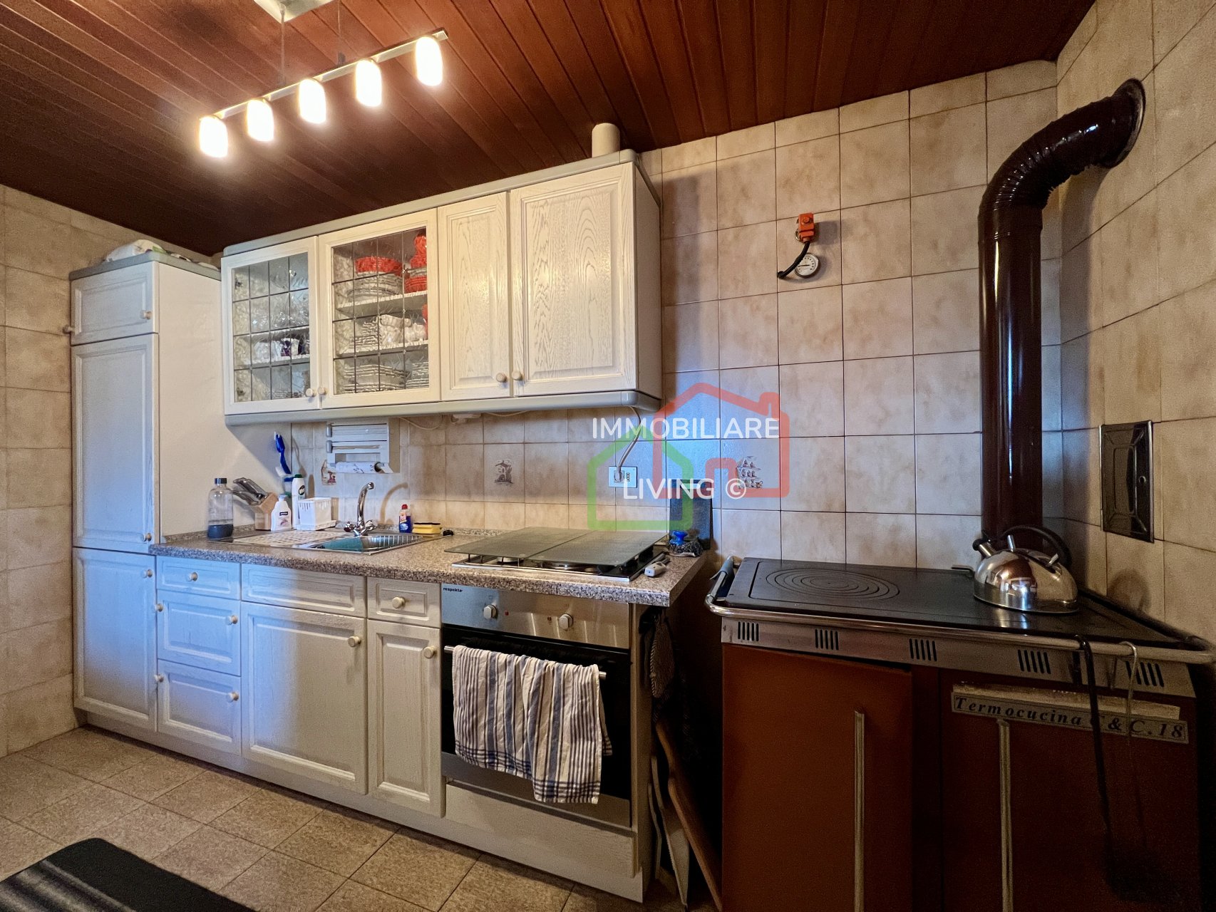 Riscaldamento autonomo a gasolio e stufa economica in cucina collegata ai termosifoni. APE G.